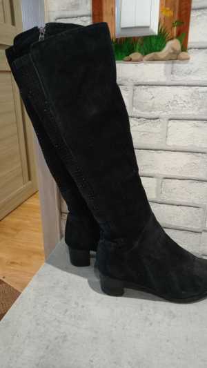 Сапоги замшевые ,сбоку россыпь почти невидимых стразов,высокие, на неполную ногу,вверху растяжка ,в хорошем состоянии,на широ...
